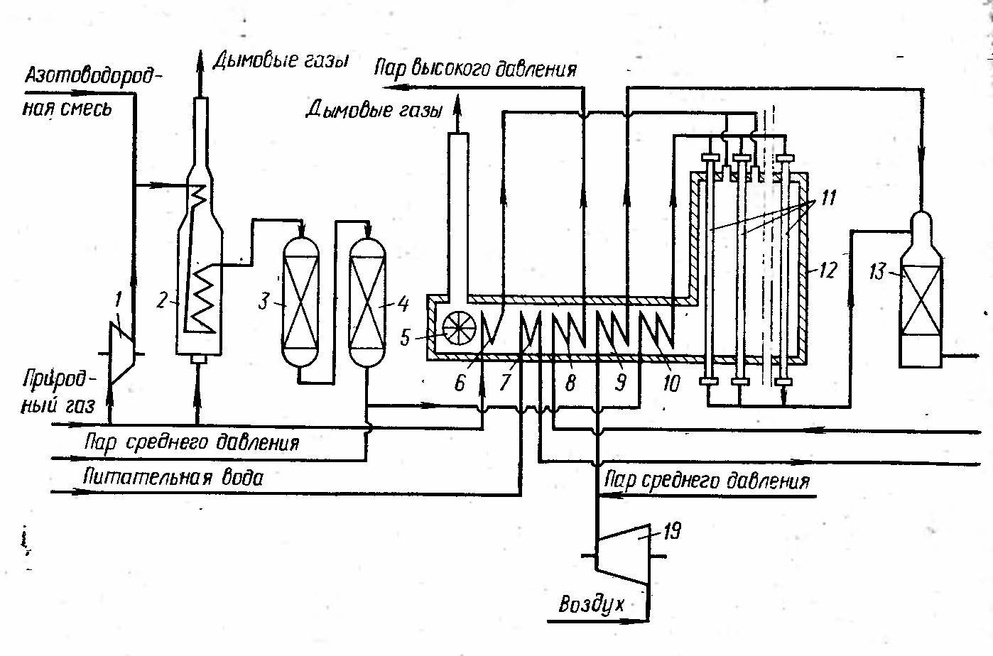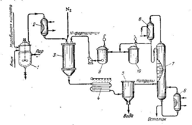 Технологическая схема получения синильной кислоты из аммиака и метана. Скачать схему через