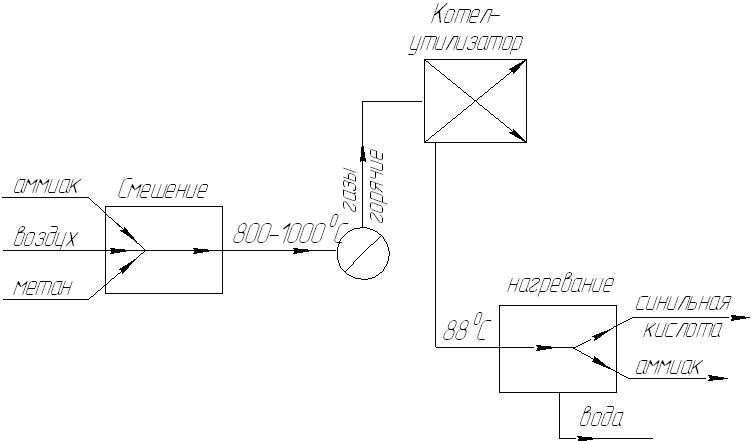 | Технологическая схема получения синильной кислоты из аммиака и метана. Скачать схему через letitbit